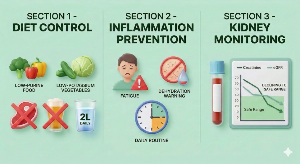 요산 수치 확인, 수분 섭취와 식습관 관리,