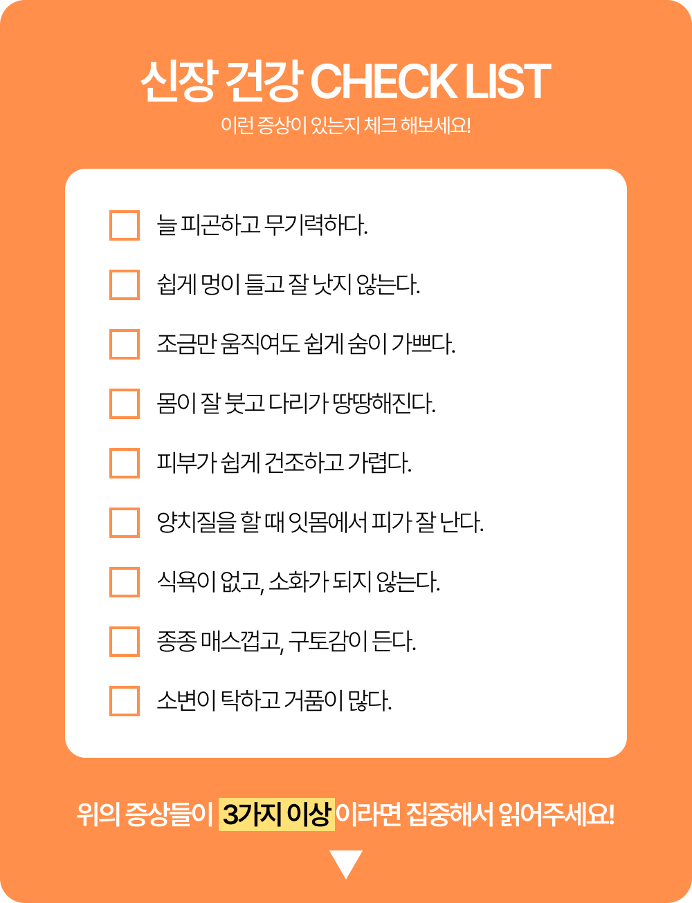그것이 신장의 문제라고 생각하지 못하고 넘어가기 쉬워요.