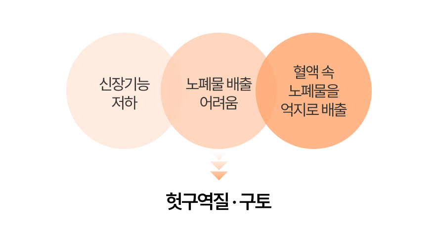 이후 방치한 상태로 신장기능이 90%이상 저하되면 소화기계 증상으로 유발될 수 있어요.