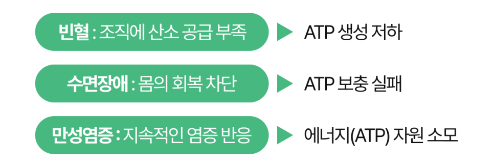 지속적인 염증 반응 → 에너지(ATP) 자원 소모