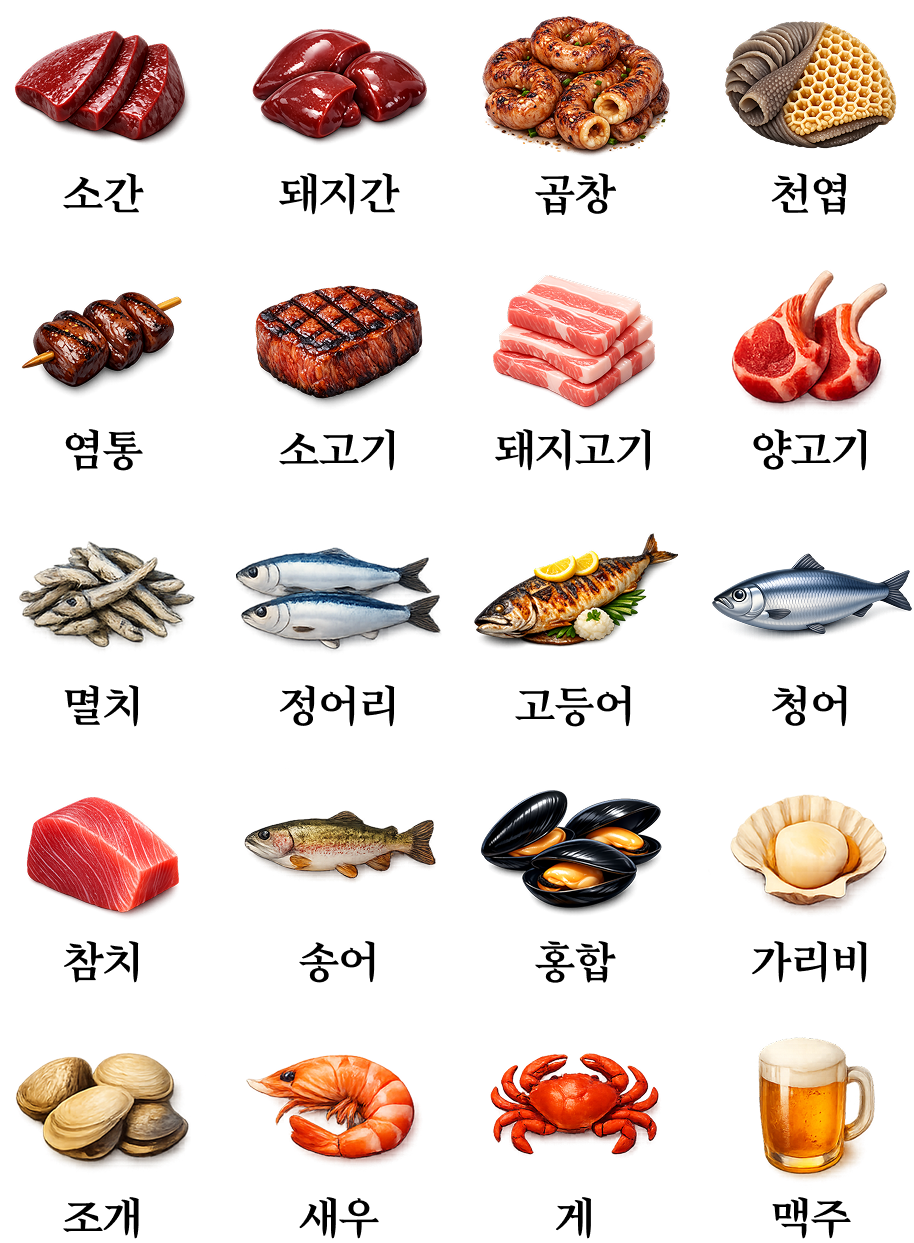 내장류 (소간/돼지간/곱창/천엽/염통)