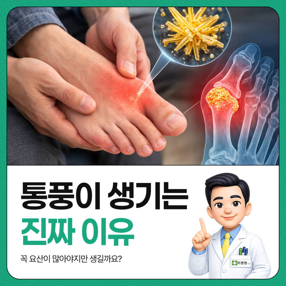 통풍은 단순히 요산이 많아서 생기는 병이 아닙니다.