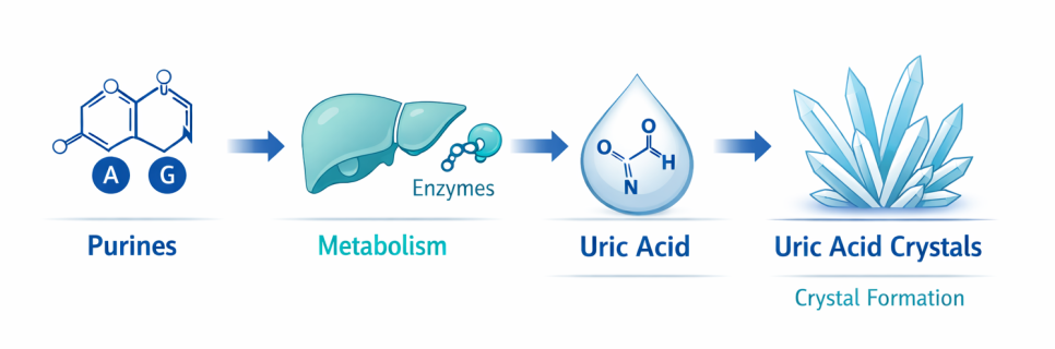 1️⃣ 요산 생성과 배출의 균형 붕괴