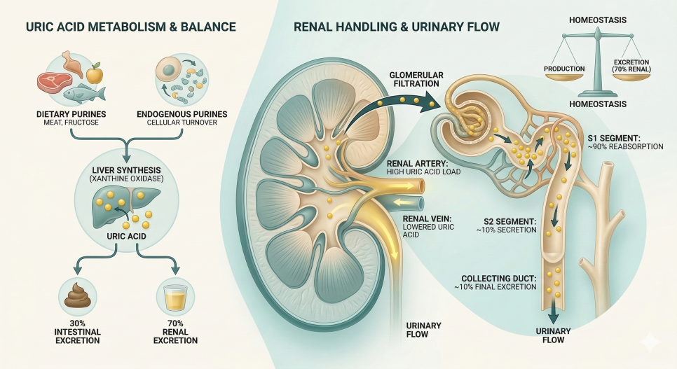 요산의 생성과 신장 배출 과정
