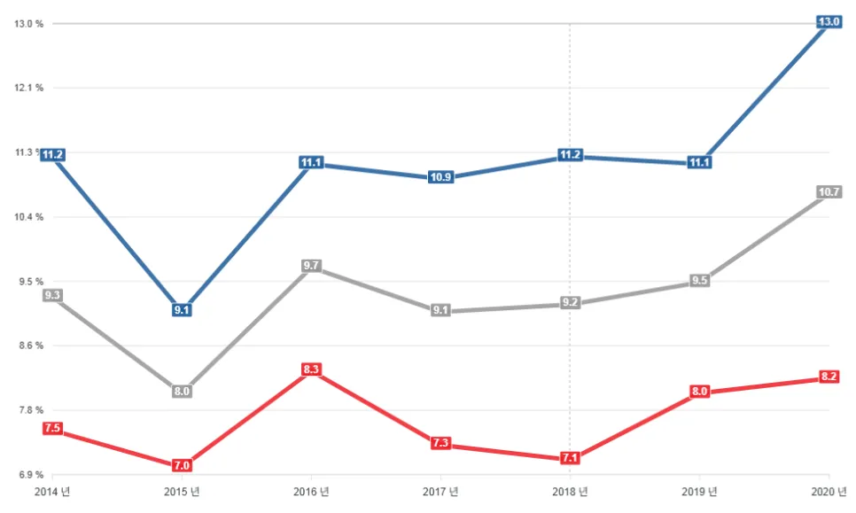 출처 : 질병관리청 [2014-2020 당뇨병 만성질환 유병률] 통계 조사