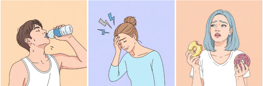 불규칙하게 식사하거나 단 음료와 같은 당분이 많은 음식을 자주 먹고,