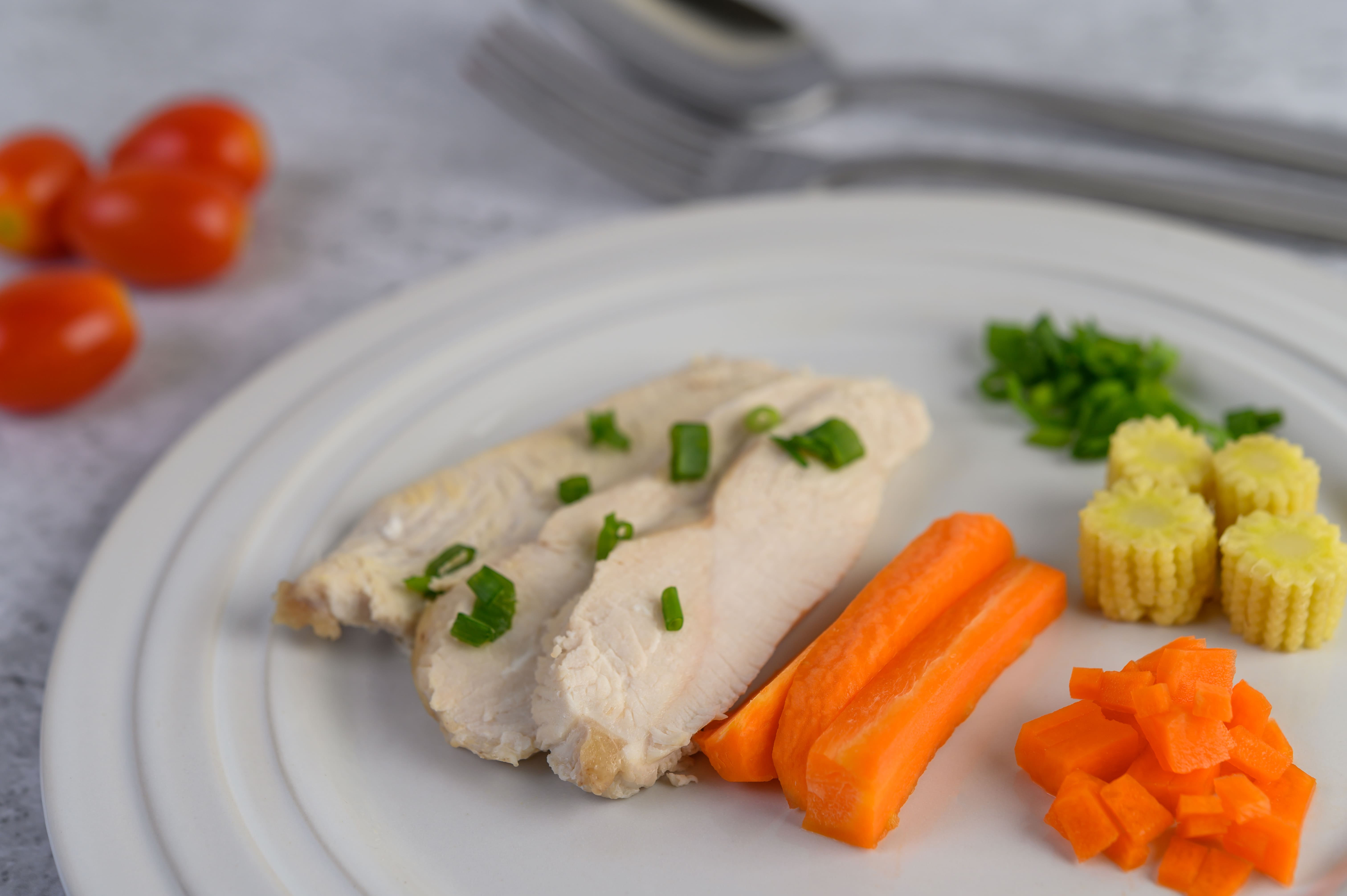 (닭가슴살을 삶아 기름기 제거 후 소량)